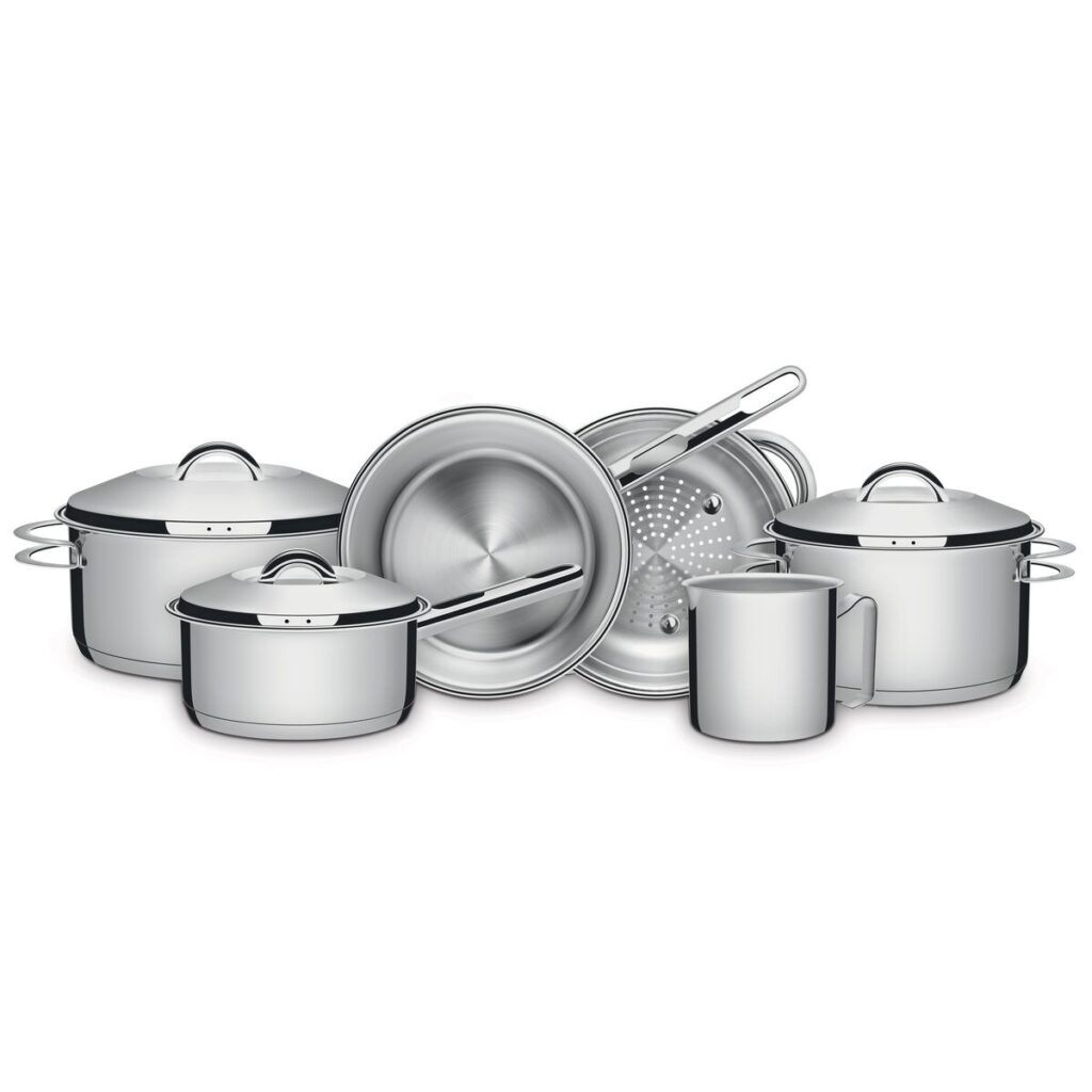 Jogo de Panelas Tramontina Aço Inox Allegra 10 Peças Fundo Triplo Com Pegador de Massa