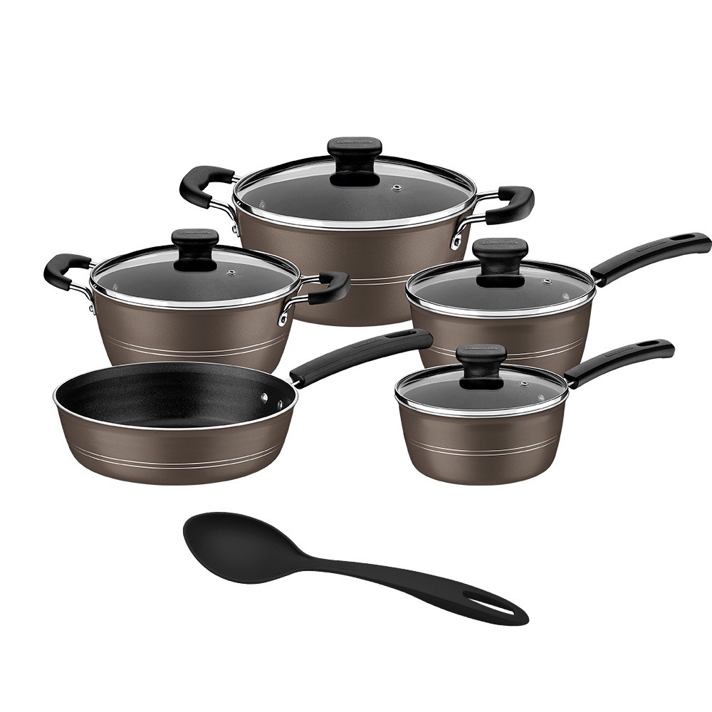 Jogo de Panelas Tramontina Sicília Alumínio Antiaderente Avelã 5 Peças + Colher